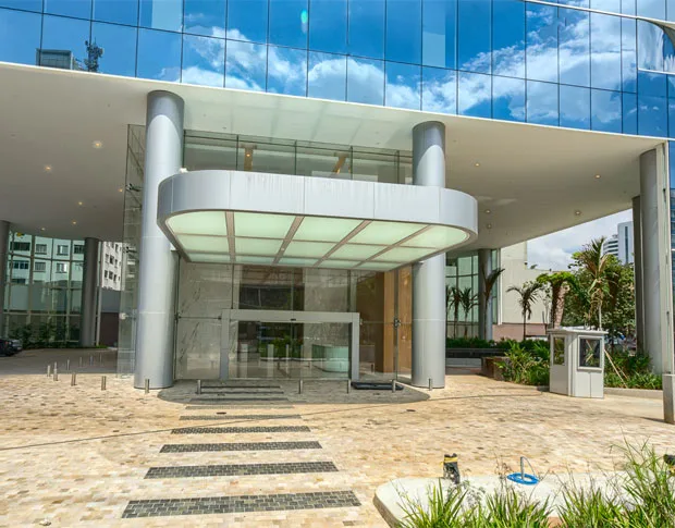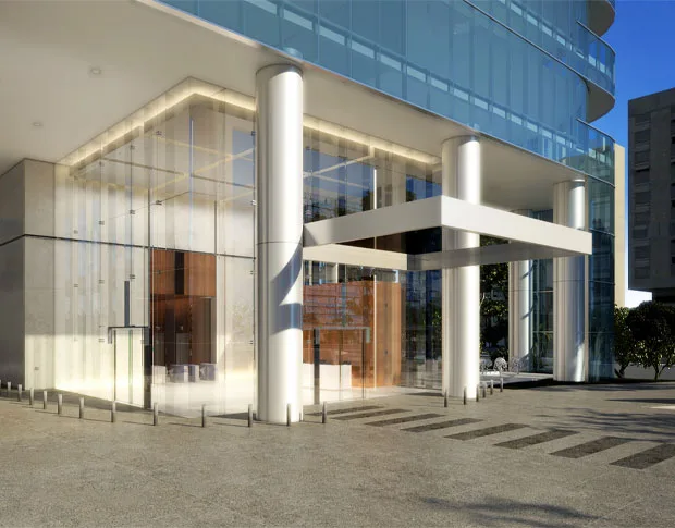 A fachada moderna e imponente do edifício é revestida com pele de vidro. Os acabamentos de alta qualidade no lobby são aspectos distintivos que chamam a atenção. Essa abordagem inovadora foi concebida pelo visionário empresário Evaristo Comolatti, fundador do grupo Comolatti, que imprime seu nome neste empreendimento.