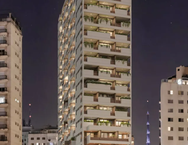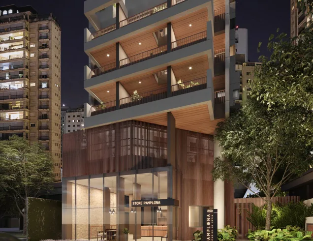 A agitada Rua Pamplona recebe um empreendimento de apartamentos studio de 20 a 30m², a poucos passos da Avenida Paulista. Um condomínio com espaços descontraídos com o essencial para pessoas com rotina dinâmica, que valorizam a mobilidade e conveniência. Tudo isso cercado pelo charme e toda a sofisticação dos Jardins. O projeto consiste em 1 torre com área comum completa, 17 andares e 212 unidades.